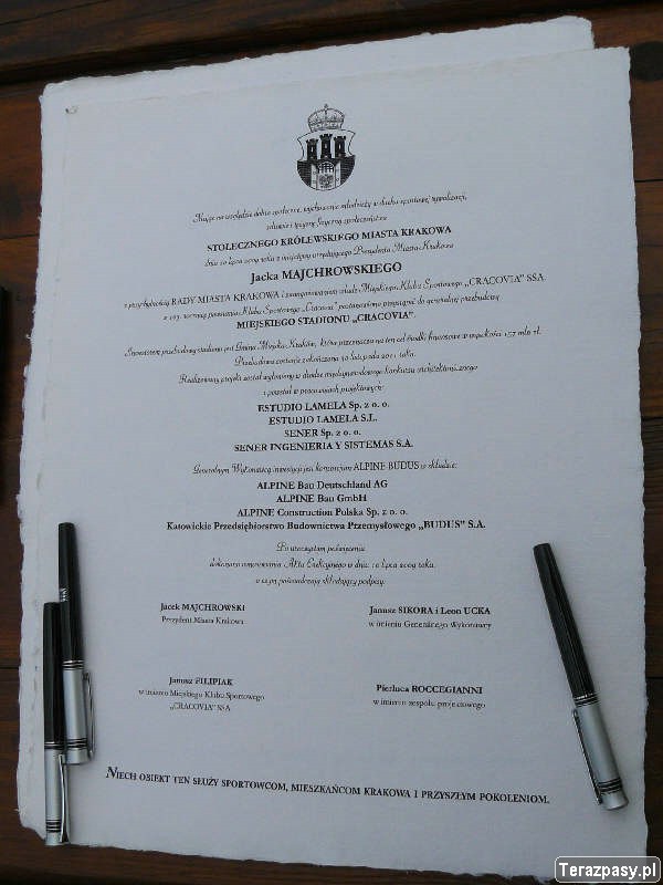 Na ten dzień kibice ?Pasów? czekali od lat. - Wszystkie sprawy formalne zapięte są na ostatni guzik. Czas rozpocząć budowę - mówił Prezydent Jacek Majchrowski podczas uroczystości wmurowania aktu erekcyjnego pod budowę nowego stadionu.